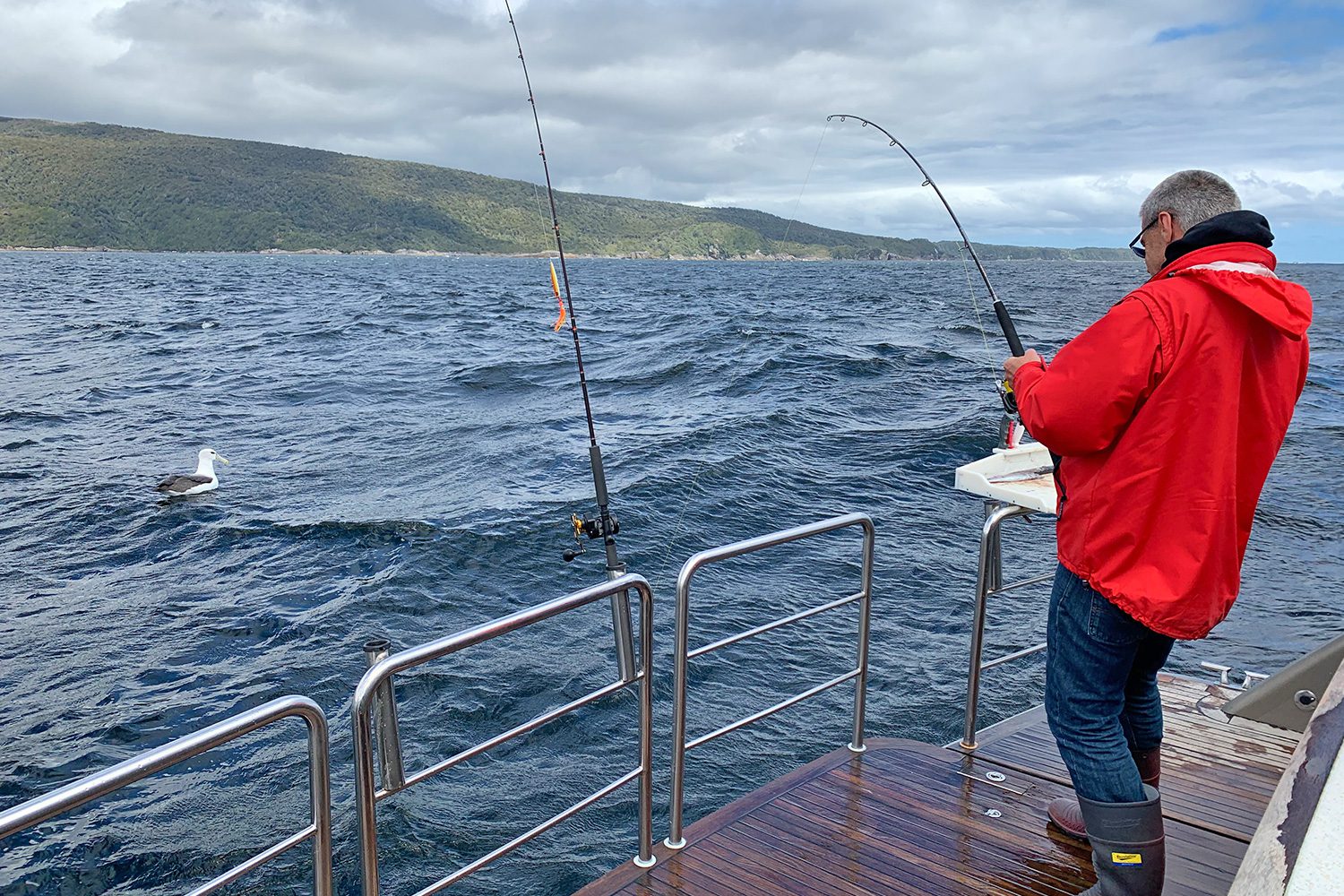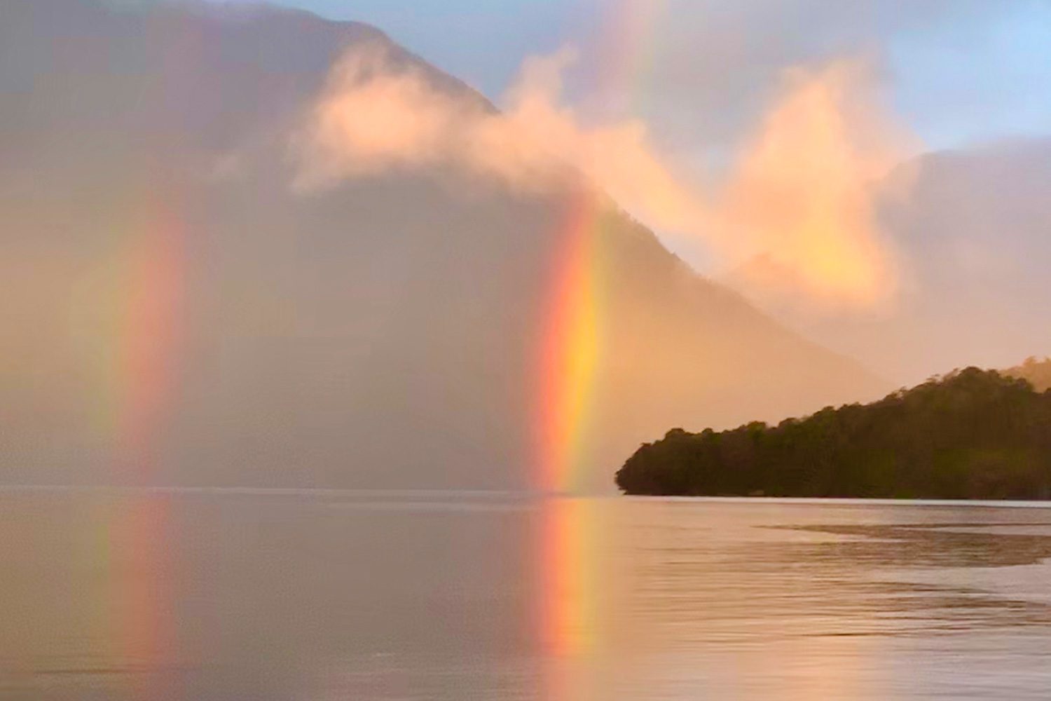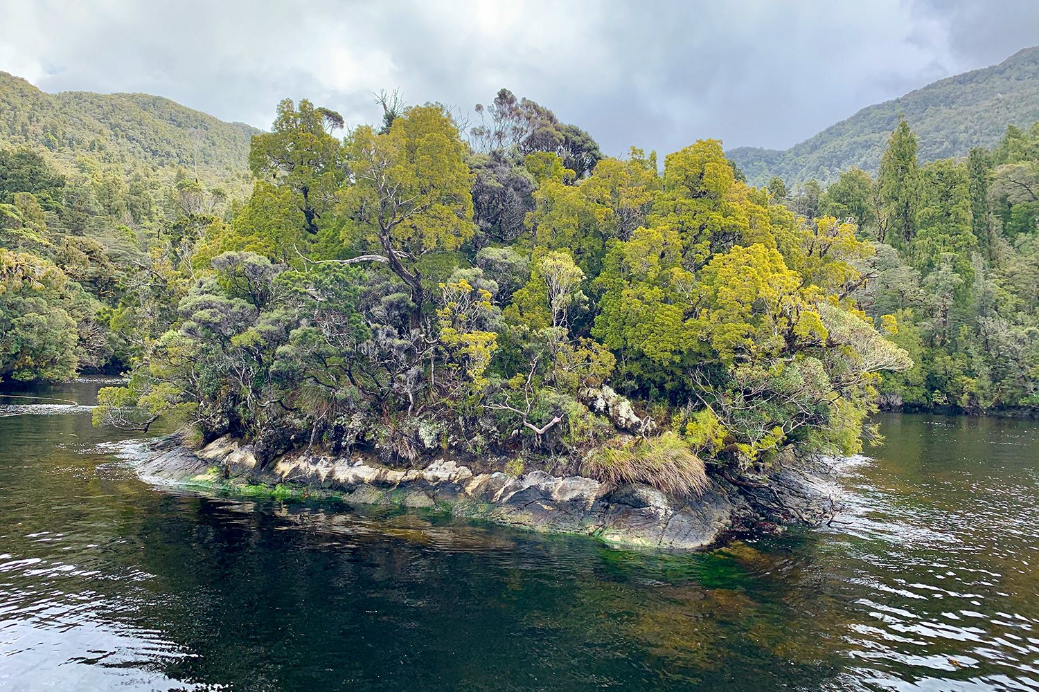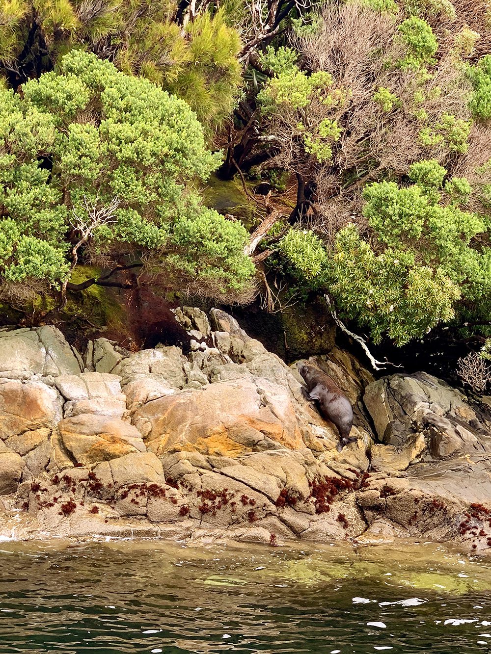 After another night and early morning of heavy rainfall we meandered our way back through the Acheron Passage. Up on the bow we saw the leavings of a visiting albatross so we found an obliging waterfall to save us the work washing it! As we cruised around into all of the many bays around Resolution Island we saw more Fiordland Crested penguins, which we had been seeing throughout Dusky Sound.