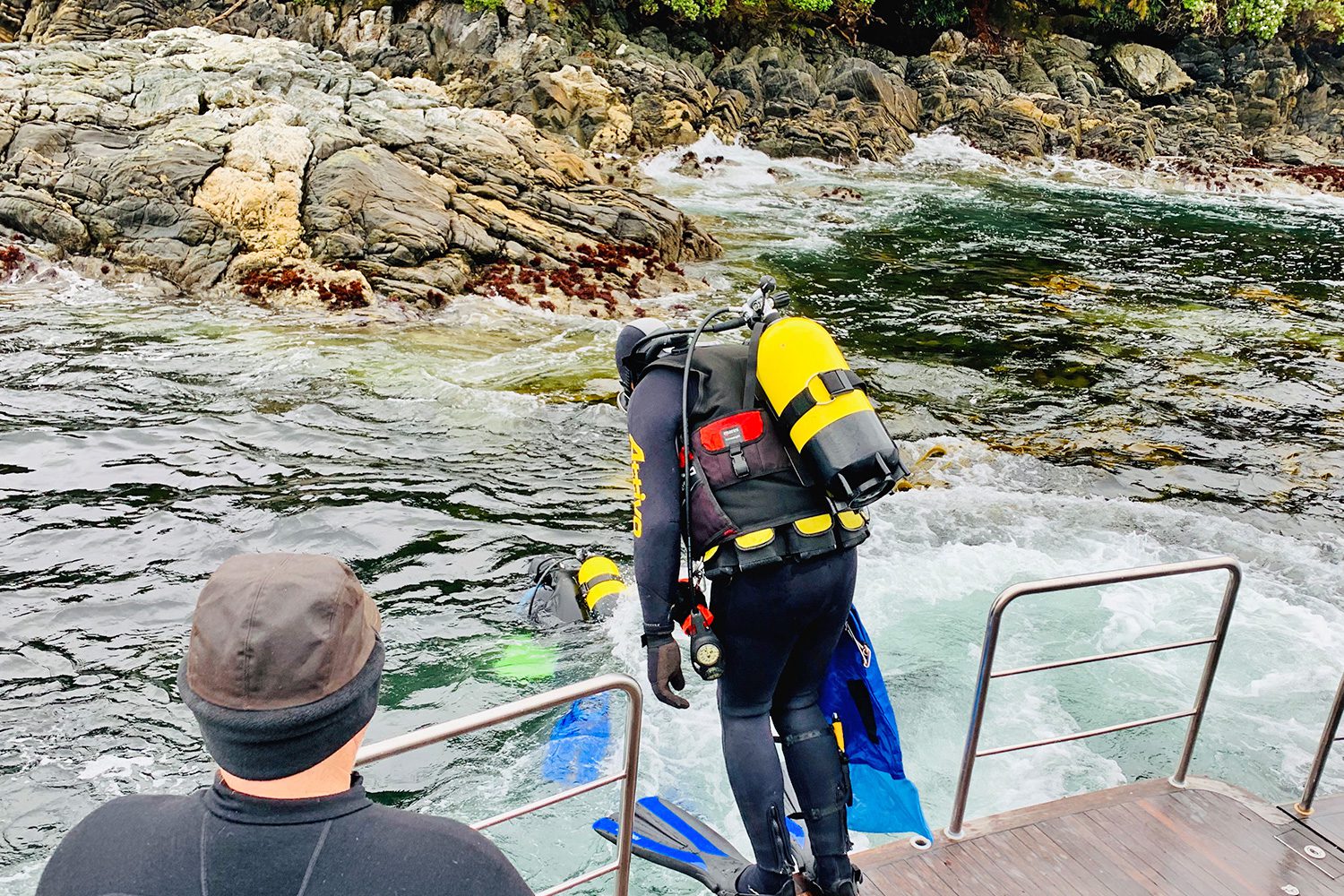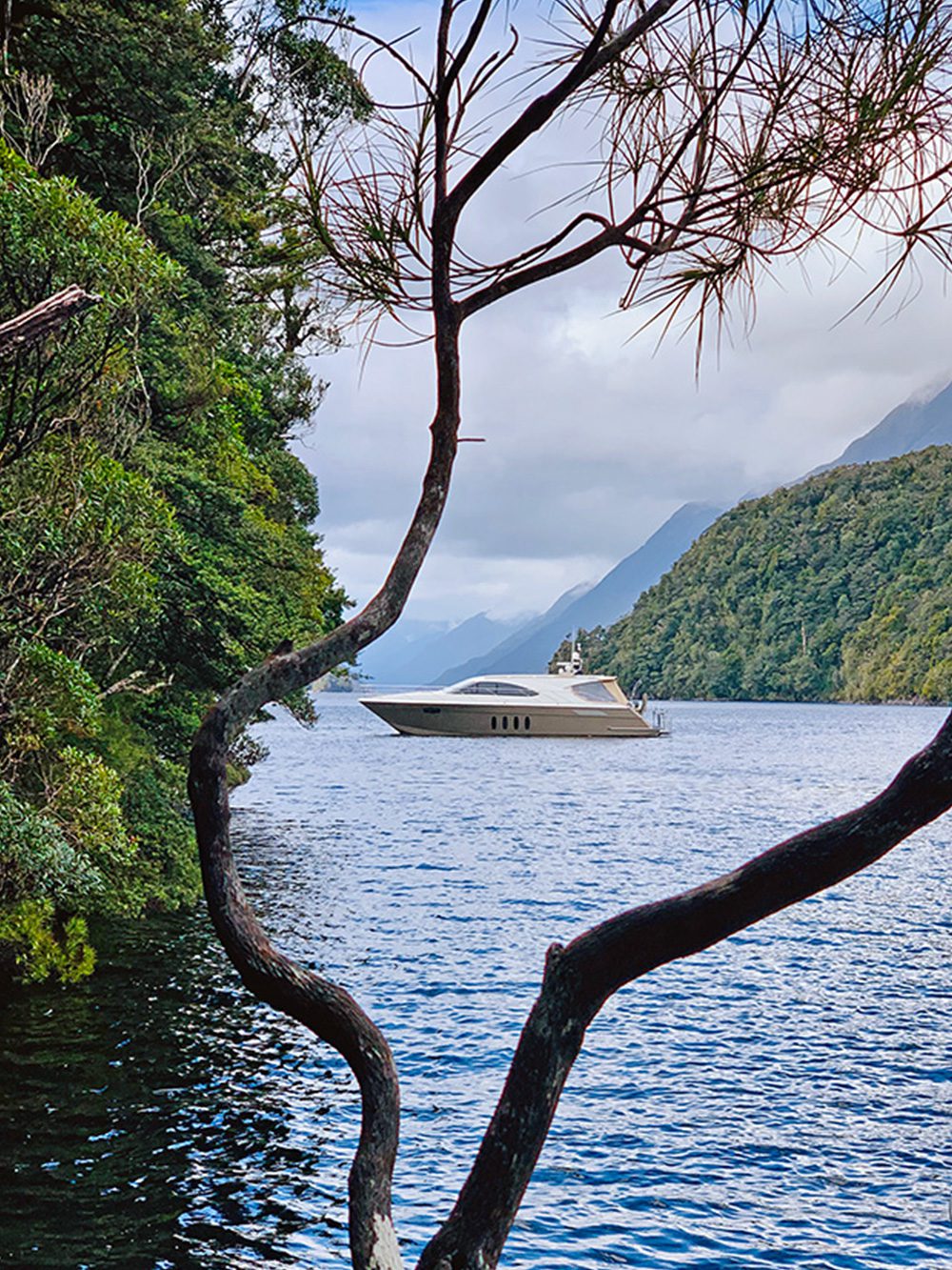 The satellite reported a big storm coming the next day so we headed back out to Anchor Island to nestle into the luxurious comfort Voodoo provides. Dave was quick to put Voodoo’s large open galley to use, serving up beautiful fresh food in the form of spicy miso crayfish tacos with a Foxes Island dry Riesling for lunch, pan roasted blue cod in citrus miso for dinner and a delicate roasted cod omelette with lemon yogurt dressing for breakfast the next morning before the storm blew in. As the rain swept over, covering everything in a constantly shifting, dense grey shroud, the myriad of small islands and rocks became as creatures in the fog, seemingly roaming the fjord as they faded in and out of view. The wind howling through the trees and rumbling low through the rocks added to the whimsical choir of birdsong and the distant deep drumming of the ocean on the unyielding coast, giving voice and substance to the mystical atmosphere that has surrounded this place since ancient times.