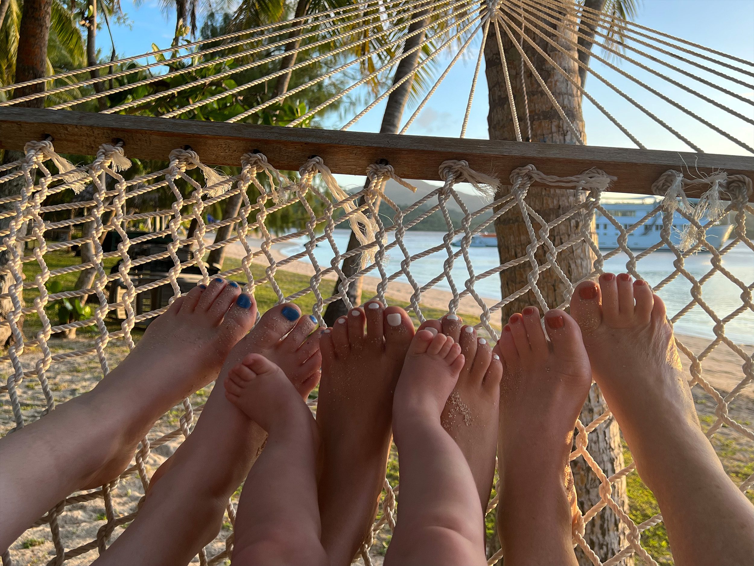 A long sandy beach stretched out in front of the boat, flanked by swaying palms and dotted with hammocks. We wandered barefoot up to the small village store each morning in hopes of catching a loaf of their highly recommended but elusive banana bread – their backing schedule was definitely on ‘island time’. On our final day, we were in luck – still warm from the oven, and every bit worth the wait.