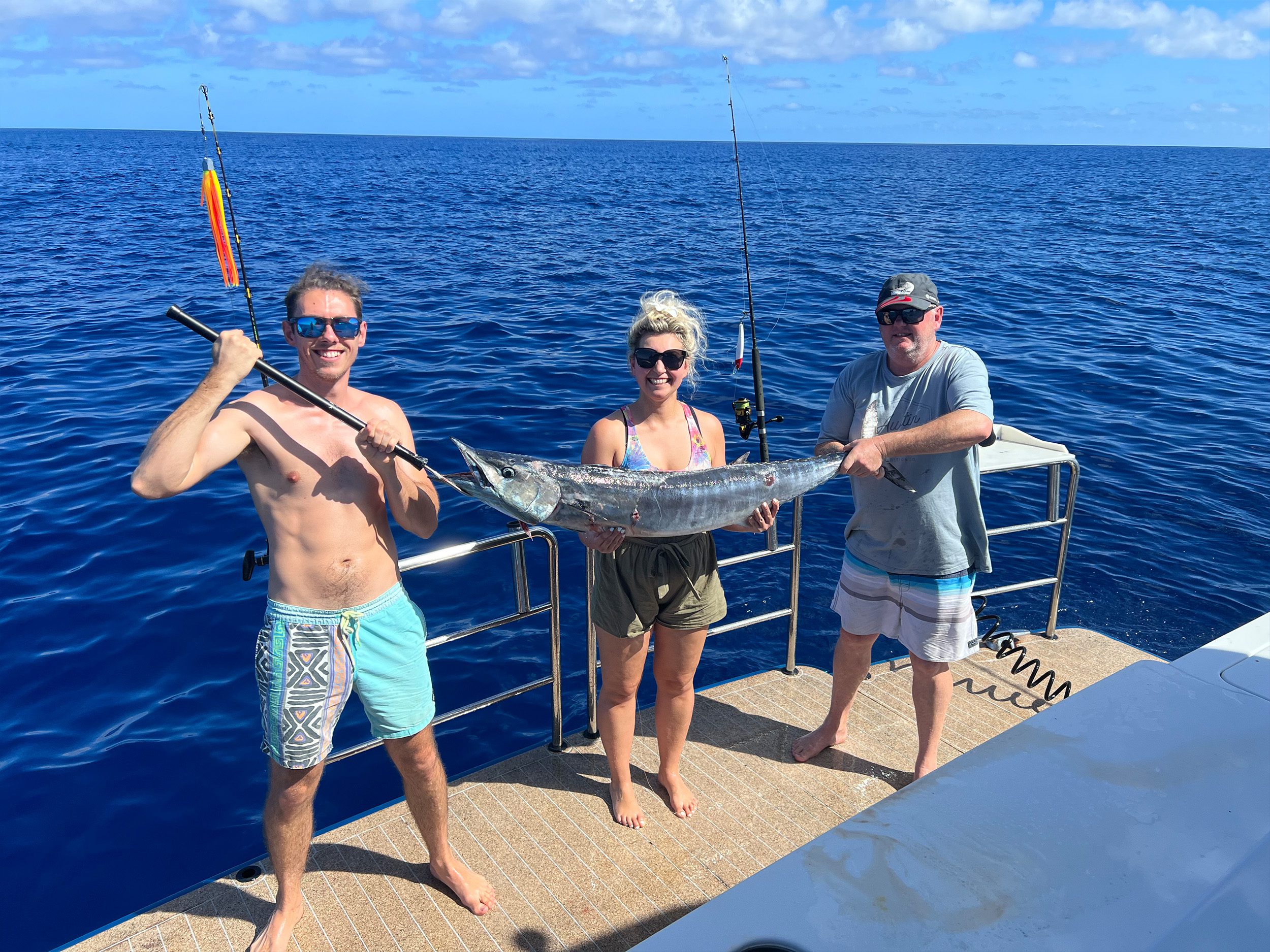Conditions were perfect: no wind, barely any swell. We put out a couple of trolling lines with Rapalas, and soon enough, Viv had a hit. After a spirited fight, she landed a good-sized wahoo – gleaming silver and strong. We kept trolling northward, up the outer reef, then wound through the islands to Naviti and Drawaqa.
