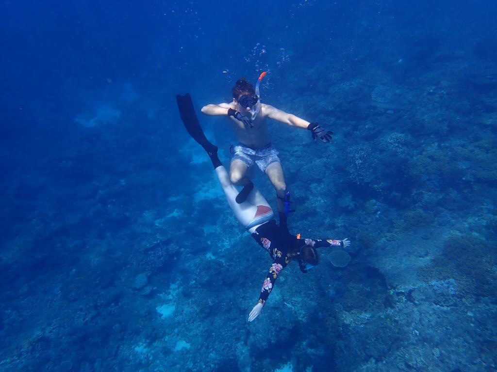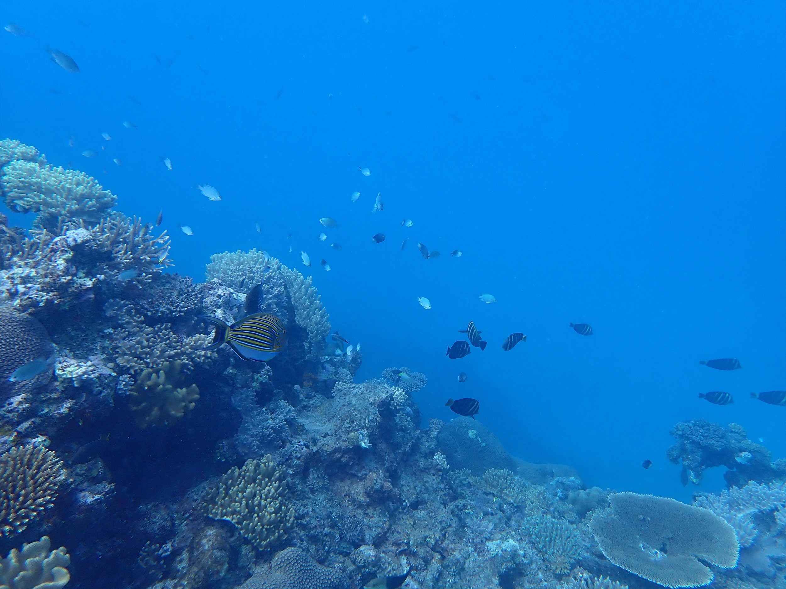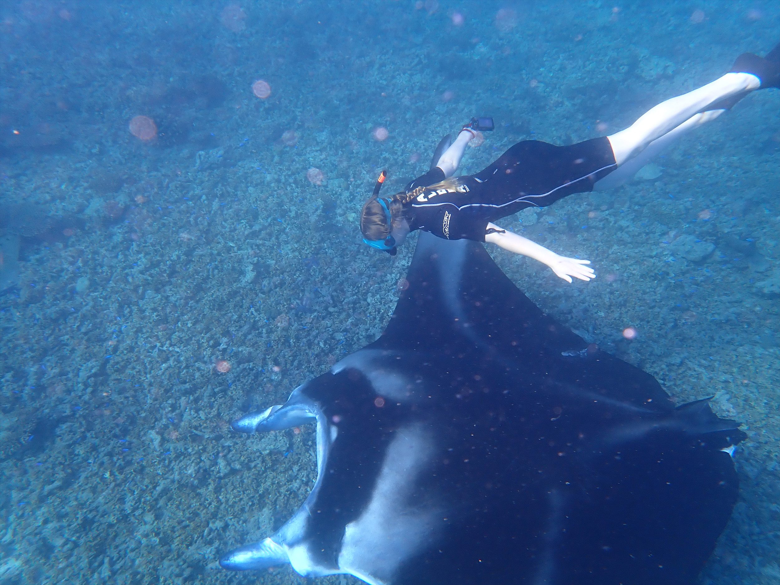 We stayed until the manta’s food moved into deeper water then headed back to the boat, elated. Half of our group returned to the boat, the others continued snorkelling along the reef where, surrounded by the teeming life of the coral reef, they completed the mornings adventure by swimming with not only the fish and manta rays, but also a turtle.