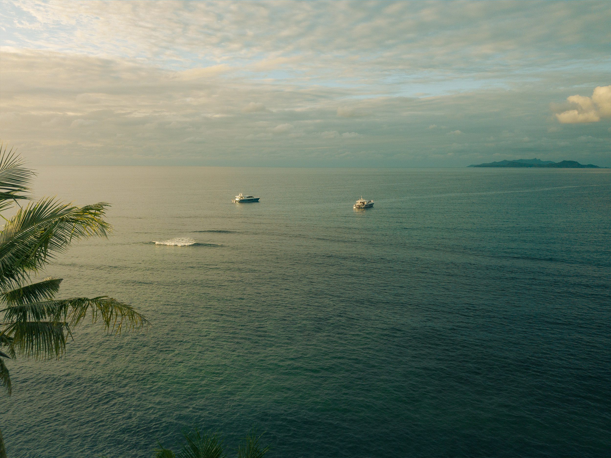 Following their lead we ventured into the top of the pass, a natural corridor bustling with life, and felt the pull of the current carry us while the mantas moved beneath and around us, unbothered by our presence. One ray, larger than the rest, passed within metres of us, its cephalic fins unfurled like a pair of soft horns guiding plankton into its mouth. What was a serious challenge for us keeping our ground against the current was effortless for the oceanic giants who showed their immense strength, giving a single gentle stroke of their wings and taking off as if the current was non-existent. Releasing our fight, we filled our lungs, dove and released ourselves to the oceans flow. The current carried us along the vibrant coral gardens, through streams of fish following an intricate network of invisible highways, a symphony of movement and colour. As we resurfaced the tender swung in to collect us and take us back through the pass to where the manta were now gathering.
