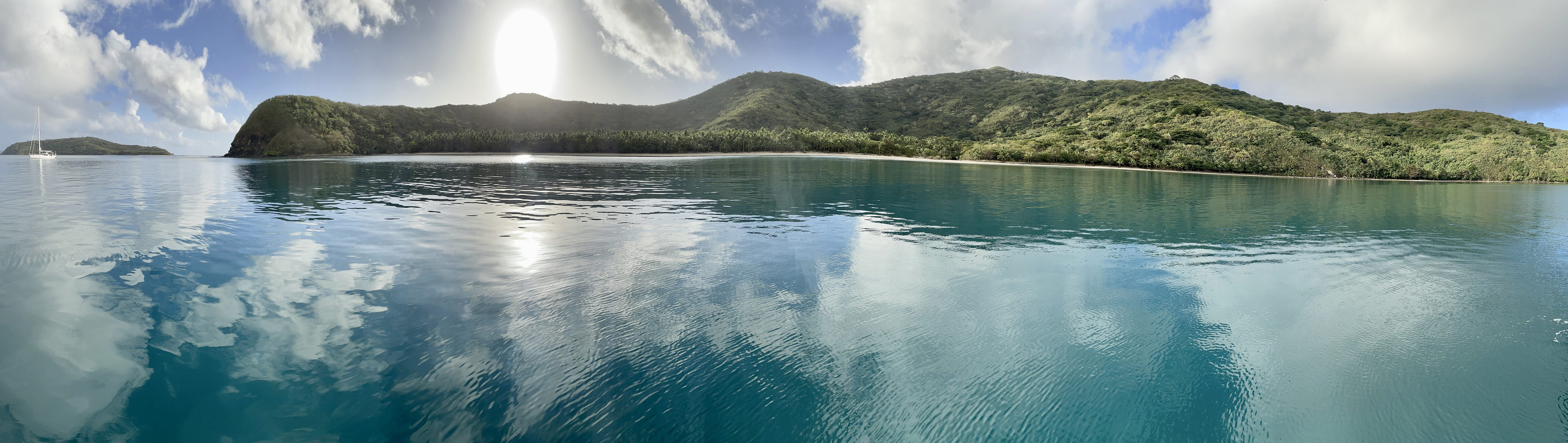 Throughout the afternoon we wound our way together north through the islands and passes of the central Yasawas. The scenery remained stunning: steep volcanic islands rising abruptly from the sea, their green flanks stitched with goat tracks and crowned with jagged ridgelines. Occasionally, we’d see smoke curling from village kitchens or a lone fisherman in his boat along the reef. Eventually we settled into the Blue Lagoon, which was to be our home for the next few days.